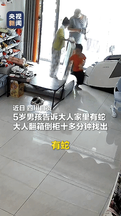 根据央视新闻10月6日报道,一名男孩在帮助家长搬运物品时,无意中发现了一条蛇藏在鞋架下,然而当他向大人报告这一情况时,姐姐却表示怀疑。